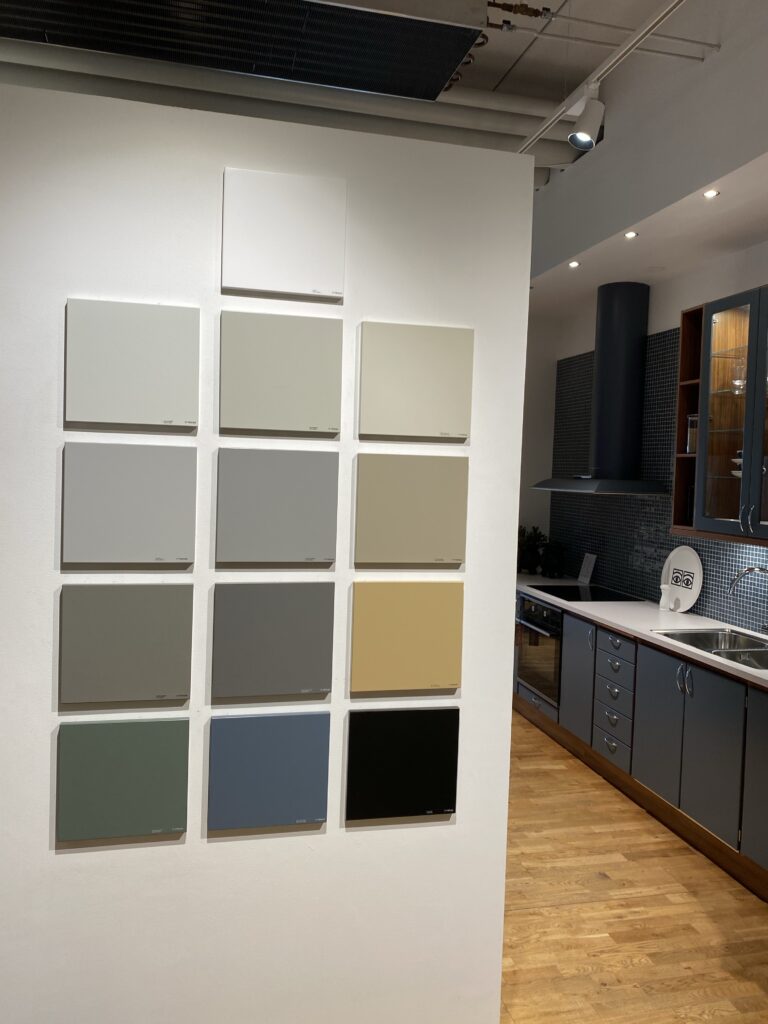 Igår blev det en tur till Vedums showroom i Bromma. Inte heller där fanns högskåpet, tyvärr. Men vi börjar ändå bli ganska klara med val av inredning. Måste bara bestämma färg. Och kakel och klinkers..