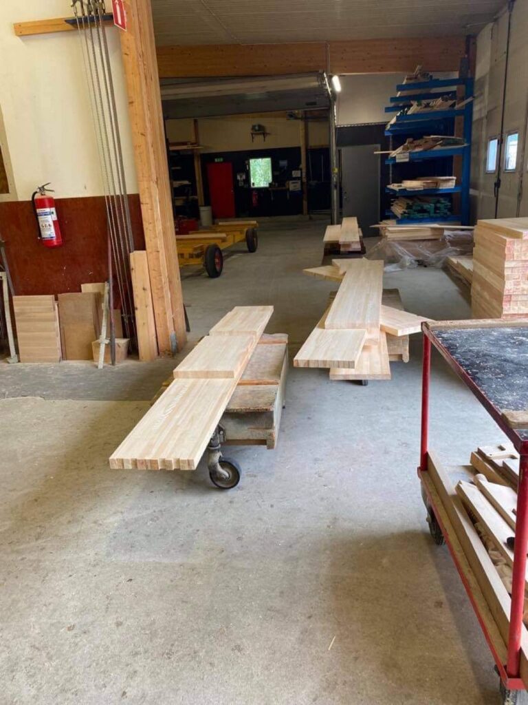 Kim kunde inte säga exakt var våra trappdelar var men han kunde se att produktionen hade startat så troligtvis såg vi några delar av vår blivande trapp när vi blev runtvisade.