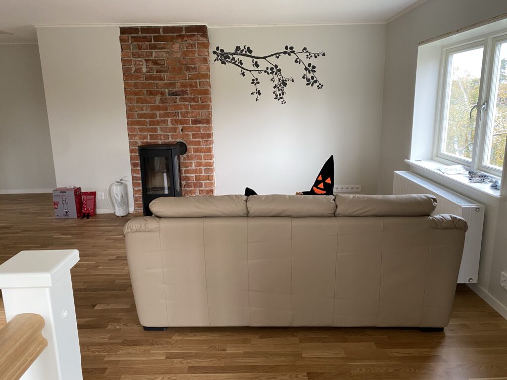Igår fick vi iaf hjälp av grannen att baxa upp Johans gamla soffa som har stått i garaget i 7 år.