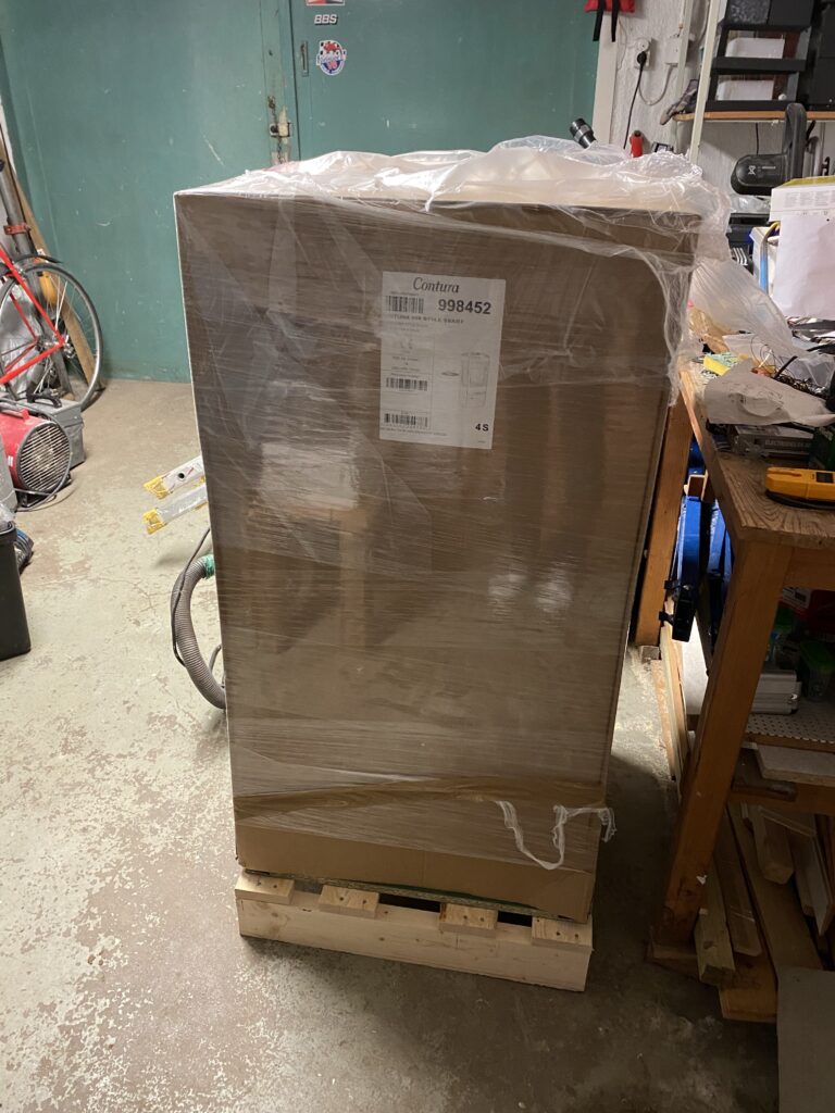 Johan åkte och hämtade den öppna spisen som vi har köpt.