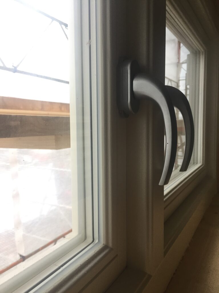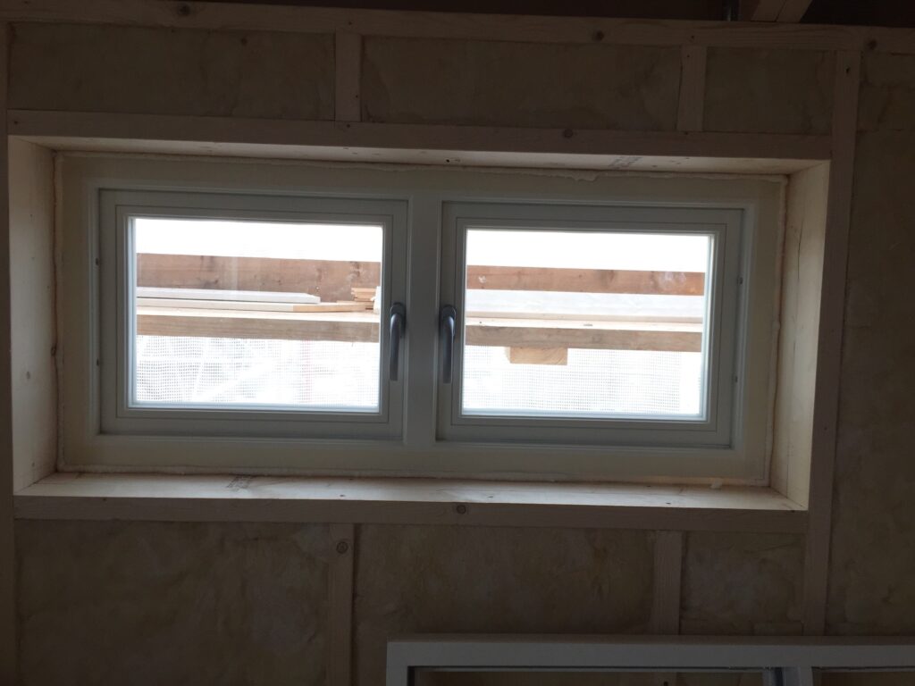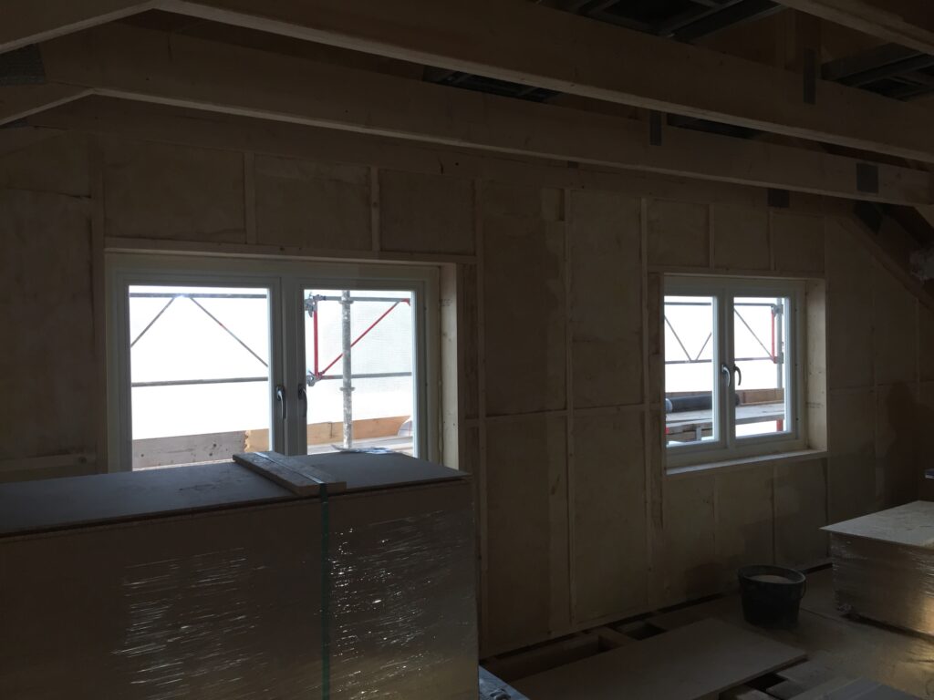 Nu är alla fönster på nya våningen satta (vi byter även på entrévåningen men det blir senare). Vi valde till slut rena treglas träfönster från Ekstrands. Bra kontakt, showroom i stan (Solna), gedigen kvalité och garantier, svensk firma (Produktion i Sverige och Polen) med god ekonomi och inte minst snygga fönster (med allmogeprofil) som är hyfsat lika de vi redan har idag. Det finns litegrann två läger när det gäller fönster, de som tänker ”en glasruta man ska se ut igenom” och de som är sjukt noggranna med detaljer och säger att ”det definierar huset”. Det är mitt emellan detta jättespann vi har brottats i tankarna och försökt hitta rätt. Både jag och Veronika vill ju att det ska bli snyggt men är mer åt det praktiska hållet och själv snöade jag in på energieffektivitet då vi vill att huset ska bli just det. Ljudinsläpp är en annan parameter och så alla detaljer kring typ av glasruta, beslag, form och typ av fönster (vridfönster, sidohängda, överkantshängda, fasta, inåtgående mm) ska beaktas. De beställs på mm nivå och är en av de dyrare materialkostnaderna så ni förstår att man vill vara noggrann att det blir rätt. Mycket tid har lagts på att fråga runt olika instanser för att bilda oss en uppfattning om var vi landar.