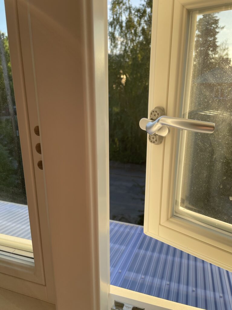 Lite klurigt är det att montera dem. Fönstret måste vara öppet, barnspärren i rätt läge, rätt kombination av barnspärr och handtag (vi har ju fått lite olika sorter) och höger/vänster koll. Men nu sitter de förhoppningsvis rätt!