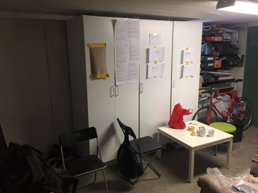 Vårt garage är numera ”byggbod”. Ställningsbyggarna sitter där och värmer sig. Imorse var det -12 när de började passet. Garderoberna flyttades mitt i häromnatten och där sitter nu ritningar på huset. Bäst att leva som jag lär, om inte alla vet målet med projektet så blir arbetet inte lika bra utfört.