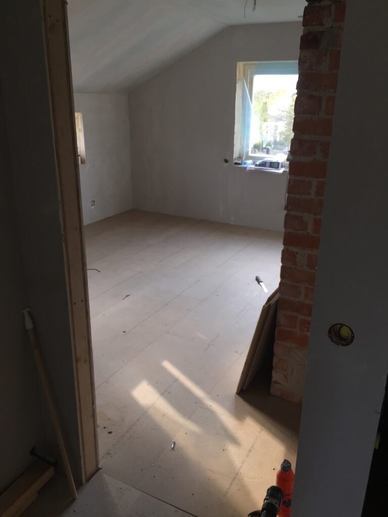 Nu har underlaget till golvet i sista sovrummet lagts.