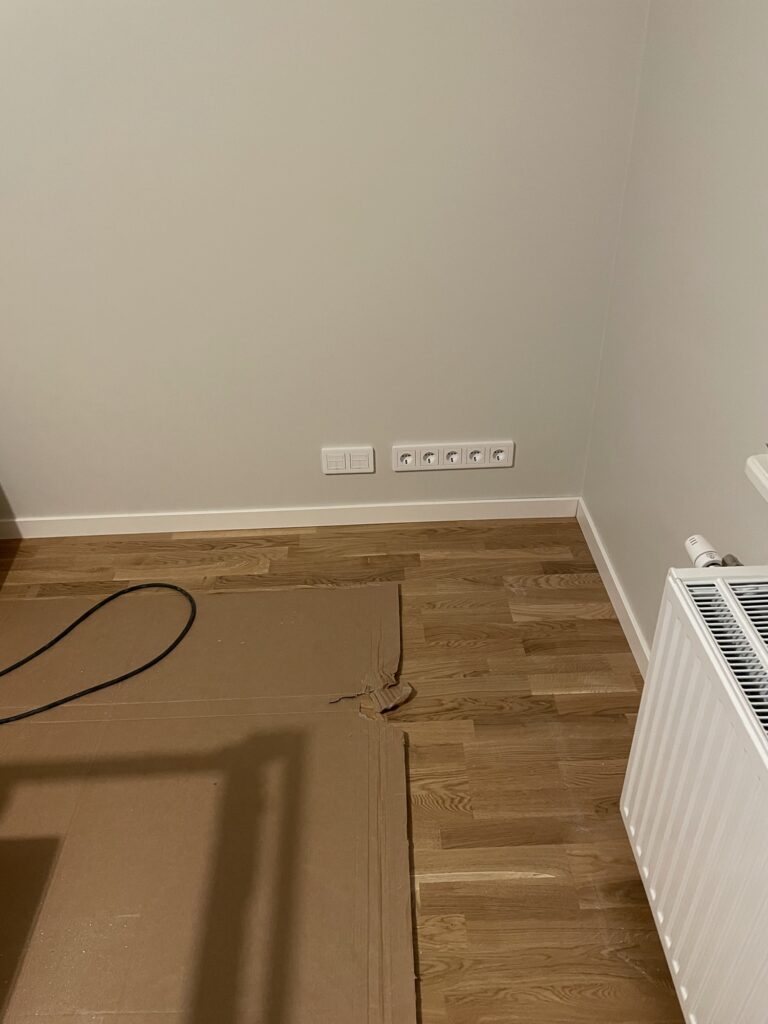 Vi kör på standardlister till golvet på nya våningen men har lite högre list i det stora allrummet än i de andra rummen. På befintliga våningen kör vi lite mer allmogestil på listen.
