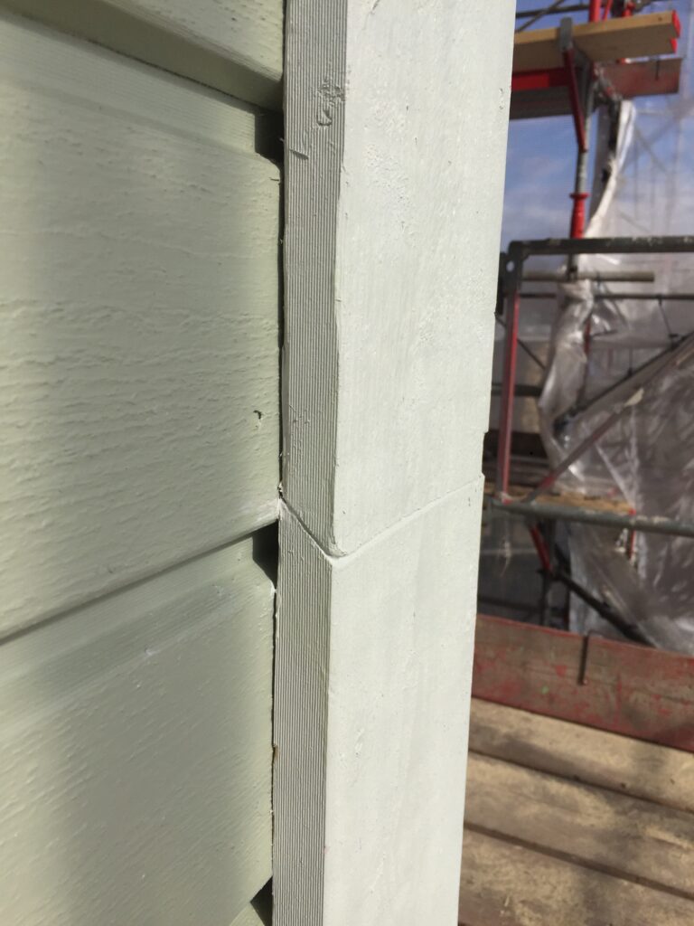 En knut består av en 12,5cm bred bräda och en 14cm bred bräda. Detta då den ena går över den andra för att få samma bredd på den gråa färgen. En skarv snedsågas för att vattnet ska rinna neråt och inte in i brädan.