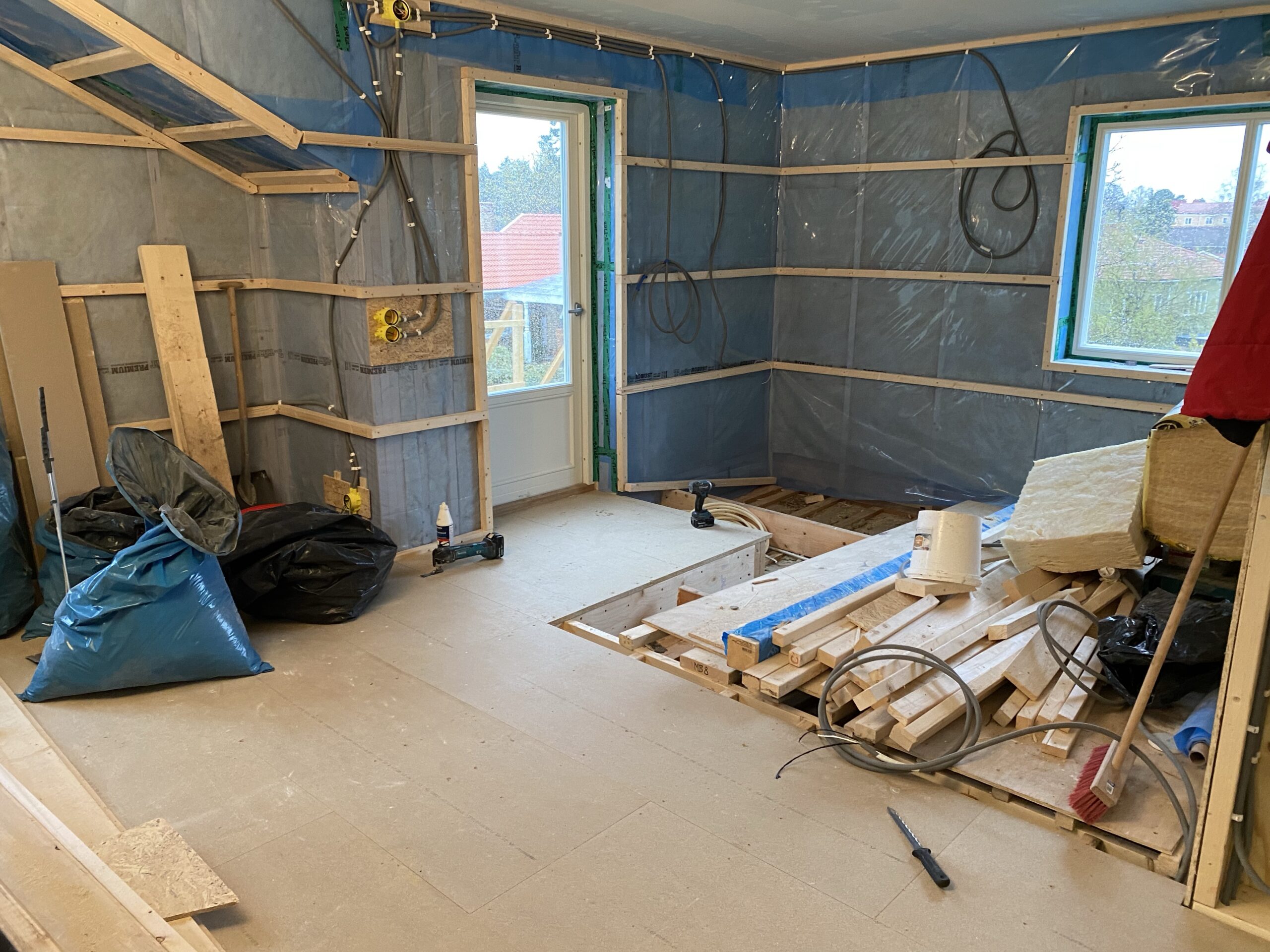 Idag har det varit full fart i huset. Tre killar från ventilationsfirman och dubbel uppsättning byggare. Vanligtvis är de två på plats men idag var de fyra. Troligtvis pga regn och kyla som gjorde att de kom hit istället för sitt andra bygge.