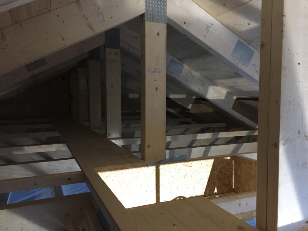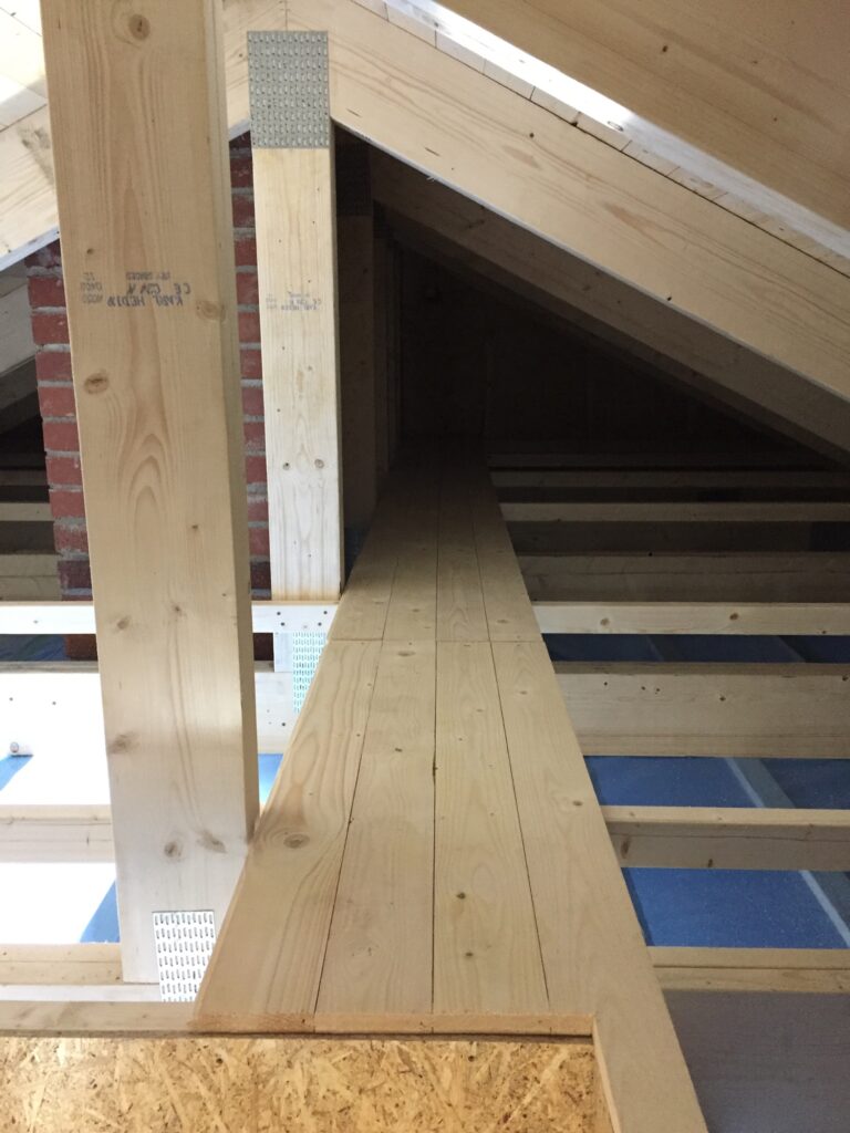 Gamla vinden var toppen för förvaring men lite väl tilltagen. Men nya vinden blir inte så pjåkig den heller, större än vi trodde. Det ska iof på en halvmeter lösull men från ”spången” och upp till innertaket finns det ju tillräckligt med plats för mer än bara jullådan.