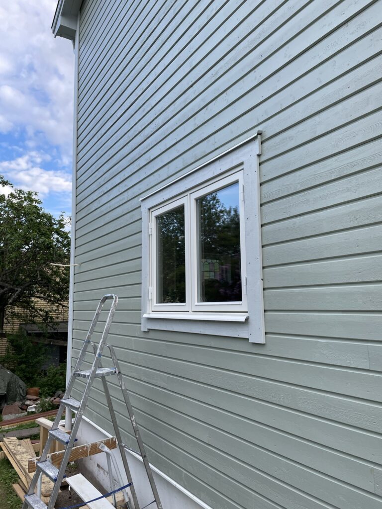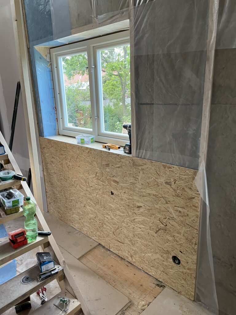Då blev det äntligen dags att sätta det sista fönstret. Det i hallen. Det har stått på uteplatsen tills vidare och idag installerades det.