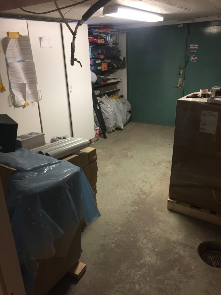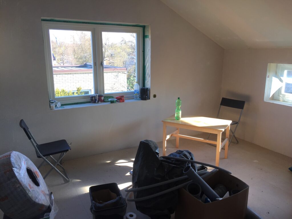 Vi passade även på att städa ur garaget. Snart tar snickarna över entrén och vi får gå ut källarvägen. Så vi inredde ”lekrummet” på nya våningen till snickarbod med bord och stolar samtidigt som vi gjorde plats för utgång med barnvagn mm i garaget mellan kakel, kamin och målarburkar 😊