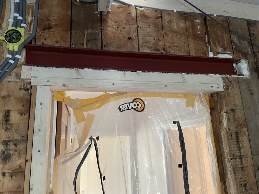 Nu är också balken ovan dörren på plats. Som jag skrev tidigare stack den ut nån cm från väggen. Snickarna var sugna på att sätta dit dubbla lager skivor på hela väggen för att täcka den. Onödigt mkt tyckte jag och vi skulle även få en liten kant vid fönstret till badrummet. Så efter kort inrådan så flyttades balken in i väggen i lilla hallen/gången. 1kvm vägg som behöver justeras istället för 10. Insåg senare att det var det näst sista utrymmet i huset som inte fått sig ett ingrepp, bara bastun kvar nu!