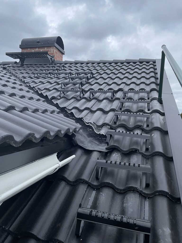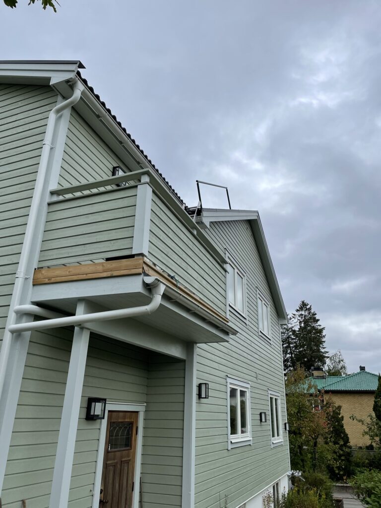 Inför sotarens återkomst så fick vi några åtgärdspunkter på taksäkerheten som vi bollat med KA. Så nu har vi en plattform uppe vid skorstenen och placerat om takstegen samt fått ett räcke. Jag är inte jätteförtjust i räcket men man måste ha ett minst 50cm högt räcke som är stabilt och väl fastsatt (tillfälliga räcken ej tillåtna).