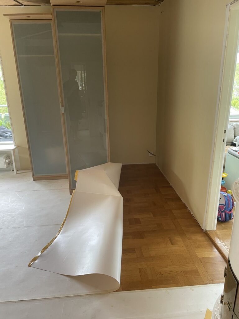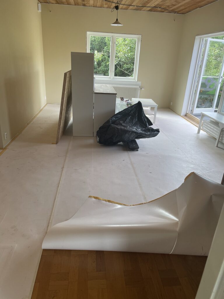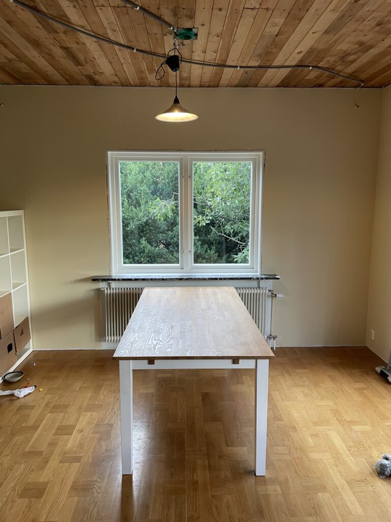 I helgen tog vi bort pappen från vardagsrumsgolvet och fick se golvet för första gången på 8 månader. Vi satte även upp fönsterbänken och kunde sedan börja flytta tillbaka lite möbler. Så i helgen har vi suttit och ätit de flesta måltiderna i vardagsrummet, härligt att få tillbaka rummet (även om det är lite kvar).